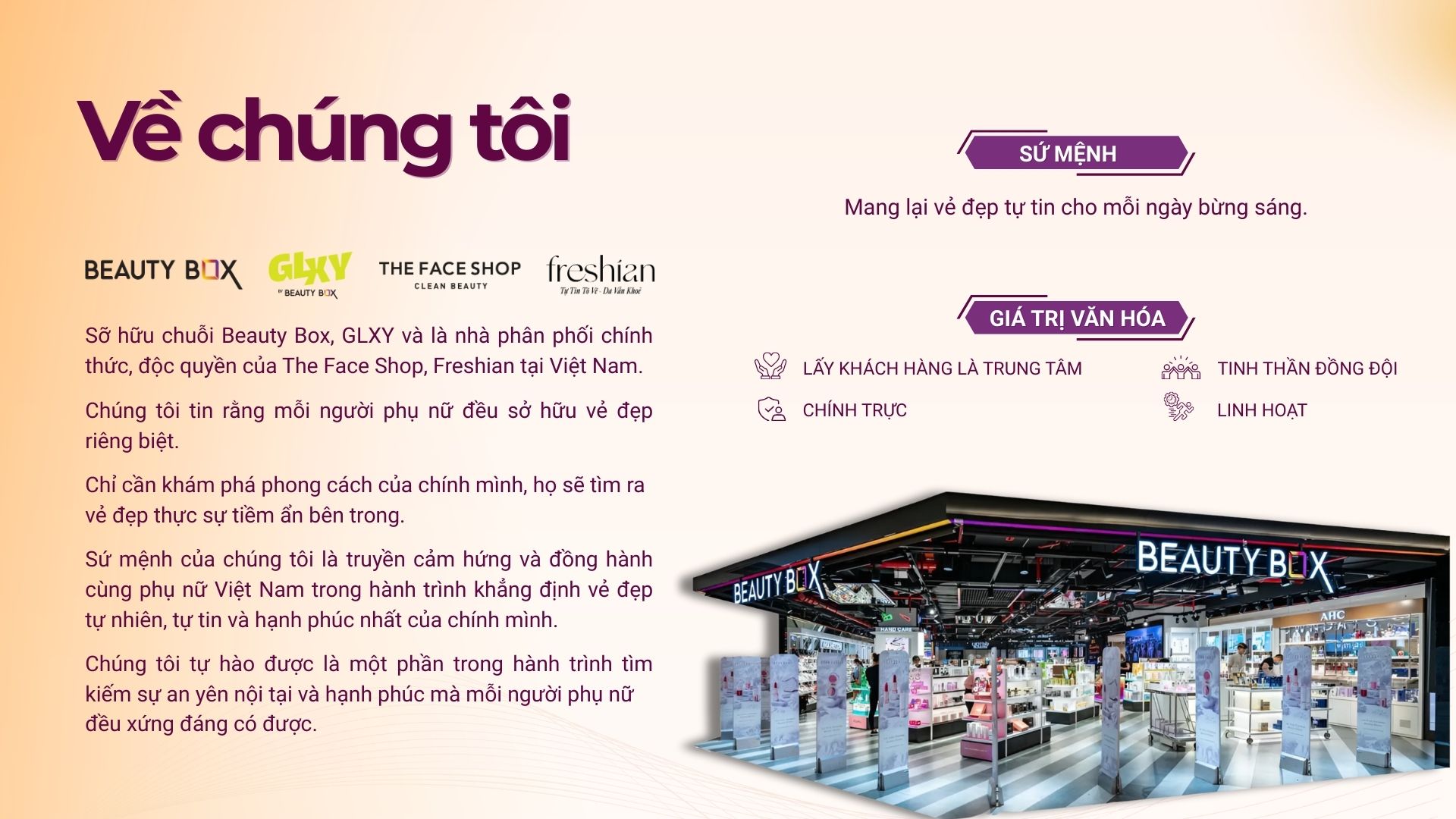 Thân gửi bạn, HSV Group vui mừng đón chào bạn vào đội ngũ để cùng hiện thực sứ mệnh mang lại vẻ đẹp tự tin cho mỗi ngày bừng sáng. Ở HSV Group, chúng tôi sẵn sàng cho mọi sự học hỏi và phát triển, không chỉ trong công việc mà còn ở văn hóa môi trường làm việc luôn lắng nghe và liên tục cải tiến. Tại đây, bạn được đồng hành và tạo môi trường để phát huy hết khả năng của mình cũng như khám phá những tiềm năng bạn còn chưa biết. Hãy gia nhập và cùng chúng tôi chinh phục những mục tiêu để thành công và bừng sáng mỗi ngày. HSV Group |